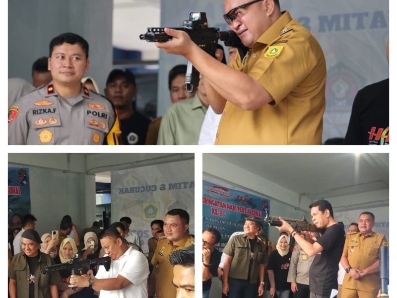 Bogor — Bupati Bogor Rudy Susmanto mengikuti kegiatan latihan menembak bersama insan pers dalam rangka peringatan Hari Pers Nasional (HPN) ke-80 tingkat Kabupaten Bogor. Kegiatan berlangsung di Graha Wartawan Tegar Beriman, Cibinong, Senin (9/2/2026).